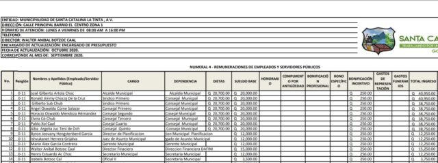 La alcaldía de Santa Catalina La Tinta, Alta Verapaz, se negó a explicar por qué los siete concejales y síndicos cobran Q20 mil al mes en sueldo base desde que asumieron sus cargos hace nueve meses.