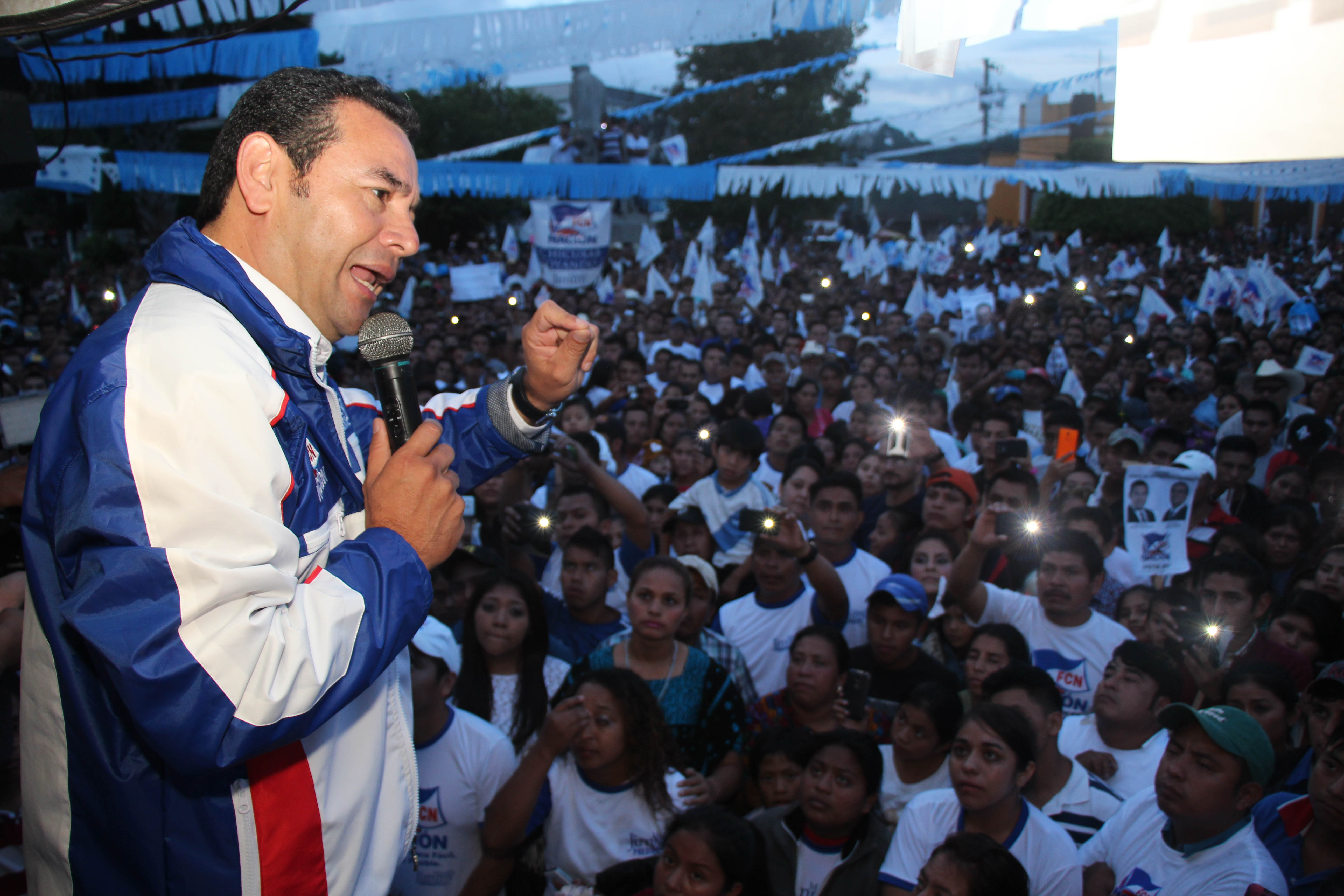 El martes 20 de octubre, en la última semana de proselitismo, el presidenciable Jimmy Morales sorprendió al llegar a Cobán un día antes de lo planificado. Por ello, los delegados de Alta Verapaz instalaron de forma improvisada una tarima en el parque central.