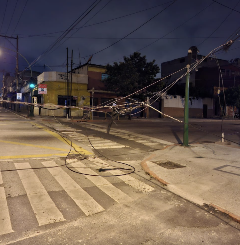 A las 10:00 de la noche comienzan a transitar. Susana calcula que alrededor de 50 camiones pasan todos los días por ahí. La mayoría transporta licor, telas o productos de tiendas coreanas. Por su peso y marcha constante, las calles de su vecindario padecen un inventario de males: asfalto roto, tubos de agua quebrados, el cableado eléctrico en el suelo y el semáforo… estampado contra la parada de Transmetro. “Solo este año la municipalidad ha bacheado tres veces por lo mal que dejan la calle”, se quejó Susana.
