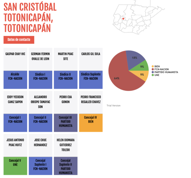 Gaspar Chay Hic, de 68 años, antes de convertirse en alcalde era comerciante. En los últimos 20 años participó como candidato y en las pasadas elecciones resultó favorecido con el 17.8 por ciento de los votos con el partido FCN, compitió contra 15 agrupaciones políticas. El abstencionismo en ese municipio fue del 38 por ciento.
