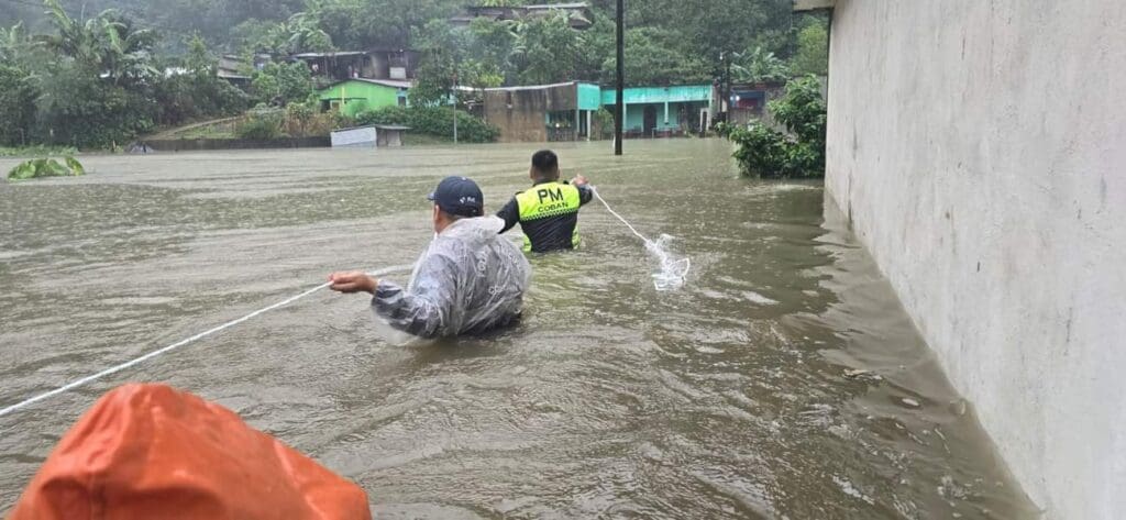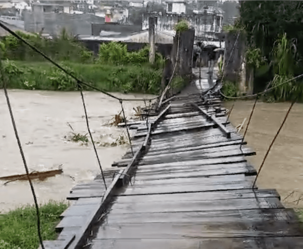 En Cobán, Alta Verapaz, las lluvias del miércoles y la mañana de este jueves provocaron inundaciones en diferentes zonas de la cabecera. Entre los más afectados está Residénciales Imperial, zona 7, en la ribera del río Cahabon donde el punte de hamaca de más de cien años fue impactado por otro puente que se desprendió del centro Magdalena.