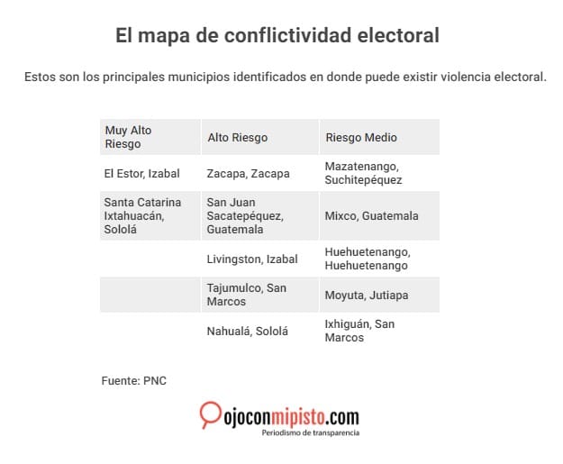 El lunes 19 se presentó el séptimo mapa de riesgo y establece que el 52 por ciento de los municipios muestran un nivel bajo (177). Según las autoridades del TSE se prevé un desarrollo pacífico, seguro y ordenado este domingo.