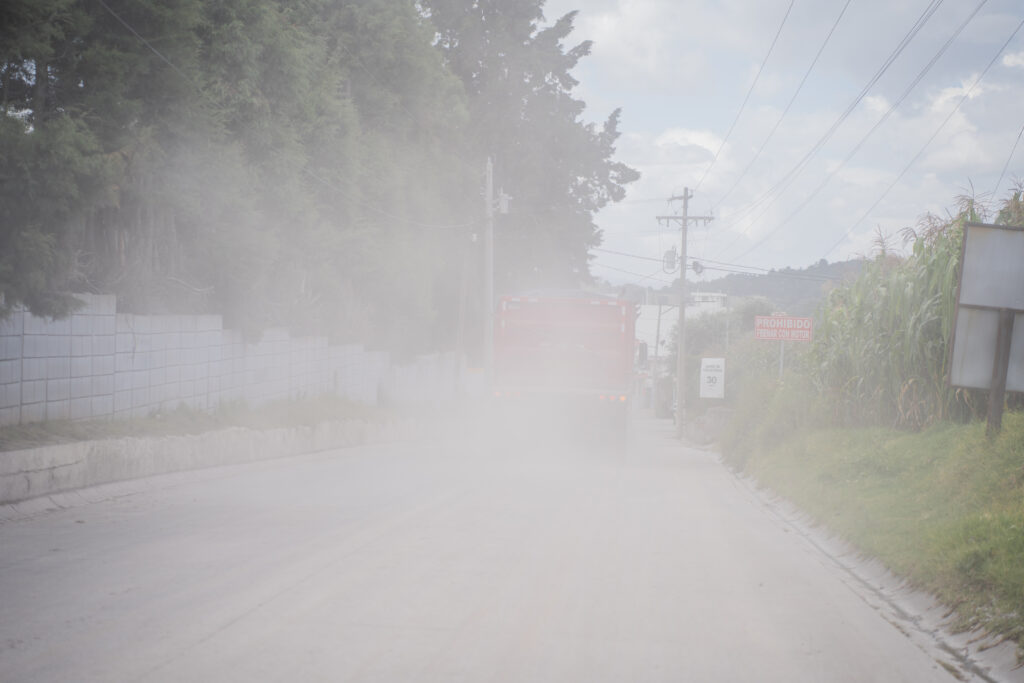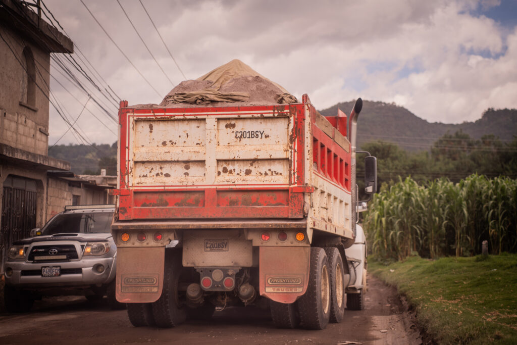 Minutos después, los camiones pasan de nuevo, y el polvo vuelve a flotar en el aire.