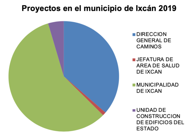 En el actual ejercicio fiscal, la municipalidad de Ixcán, Quiché, presupuestó 105 proyectos que serían ejecutados por la comuna. Dentro de estos contempla la ampliación de caminos rurales y escuelas, construcción de calles, canchas polideportivas, escuelas, puentes, puestos de salud, sistemas de agua potable así como dotaciones de diferente materiales y equipos.