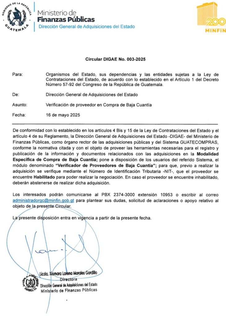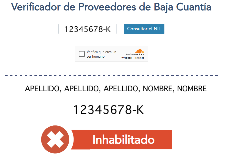 Solo deben ingresar el Número de Identificación Tributaria (NIT) para corroborar. El tiempo mínimo para estar deshabilitados son dos años. A través de la circular DIGAE No 003-2025, los proveedores de baja cuantía (NPG) deben contar con todas sus obligaciones al día y no tener inhabilitaciones .