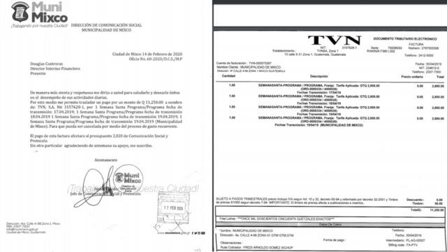 Guatevisión emitió la factura con fecha 30 de abril de 2019, por cuatro espacios que la alcaldía contrató. Cada uno costó Q2 mil 800. Bran figuró en los horarios de 16:00 a 18:00 horas el miércoles santo de 2019; 13:00 a 15:00 horas, jueves santo, y el viernes santo de 12:00 a 13:30 y 16:00 a 17:00 horas.