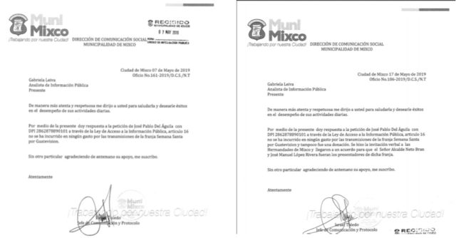Los trabajadores de Mixco lo negaron dos veces, el 7 y 17 mayo del año pasado. La primera vez, el jefe de comunicación Israel Toledo contestó que no se incurrió en ningún gasto.