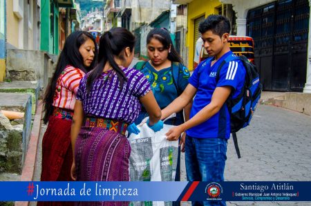 La municipalidad de Santiago Atitlán y la organización Amigos del Lago promueven enseñarles a los escolares a no tirar basura en la calle ni utilizar bolsas plásticas.