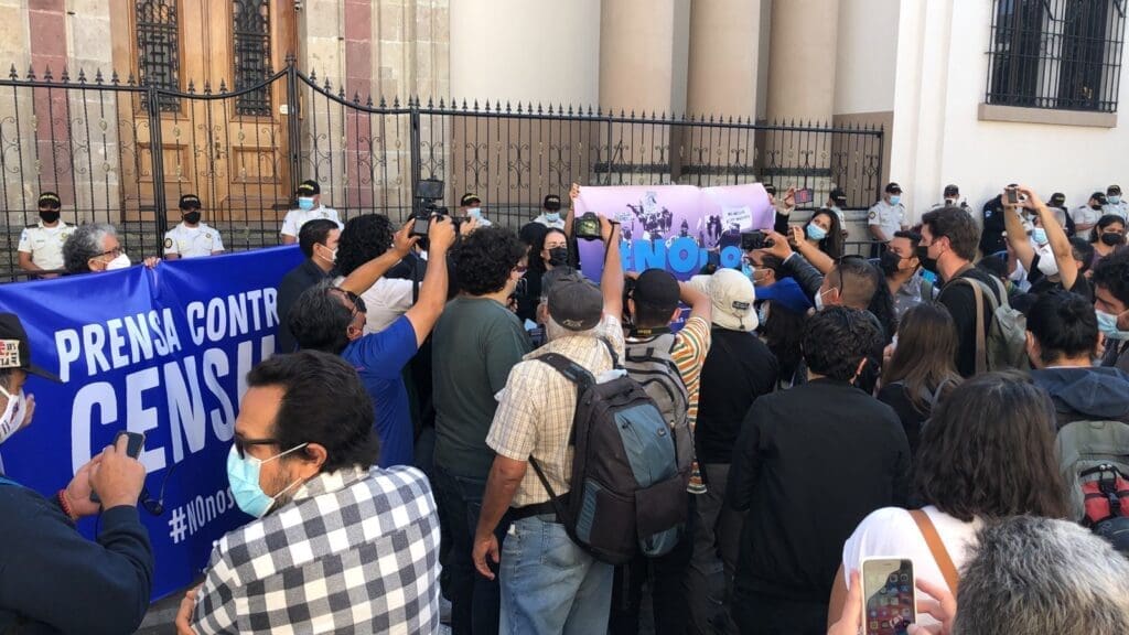 Este 30 de noviembre, decenas de reporteros, editores, fotógrafos y comunicadores en general manifestaron en el Centro Histórico para denunciar “el asedio inusitado” a la prensa durante el último año. También se exigió a las autoridades respetar el ejercicio periodístico y el derecho a acceder a la información pública.