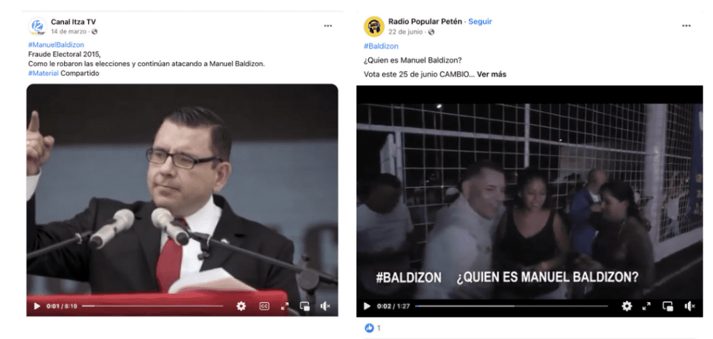 Las páginas resaltan en sus post la figura de Manuel Baldizón padre, pese a que su inscripción como candidato a diputado en esta contienda fue anulada por el TSE debido a los cargos que enfrentó en Estados Unidos.