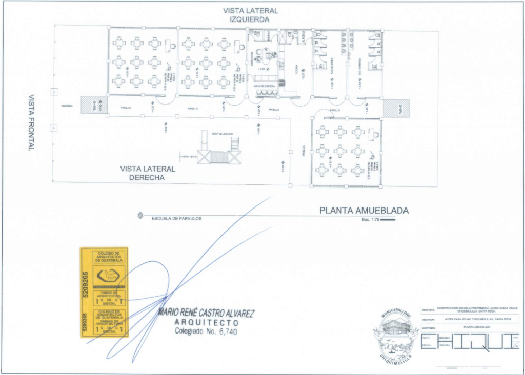 Planta amueblada de la Escuela Preprimaria aldea Casas Viejas. Imagen: Guatecompras.