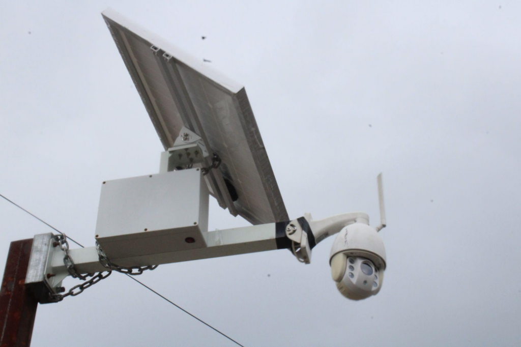 Hay tres cámaras de seguridad en la zona de la construcción. Todas funcionan con paneles solares y la monitorean desde el 13 de mayo.