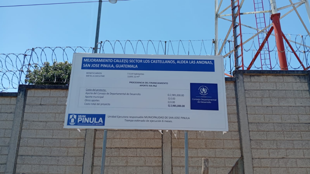De acuerdo con Erick Alfaro, director Ejecutivo del codede de Guatemala, hasta ahora solo se han realizado dos desembolsos, no el aporte completo. Sin el rótulo correcto, no se puede presentar el informe de avance de la obra ni realizar los pagos.