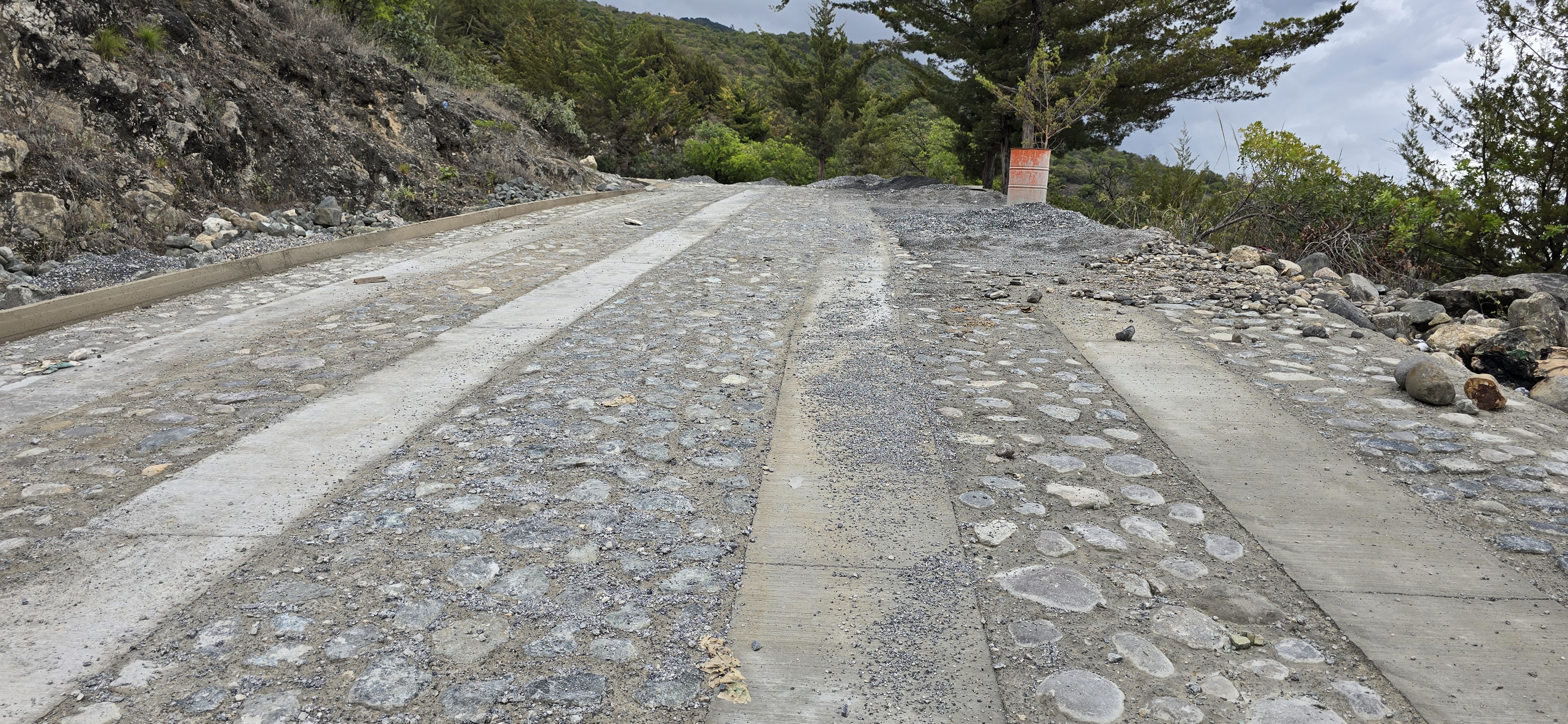 El último informe disponible en el SNIP, con fecha 18 de agosto, señala que se encuentra pendiente la fundición de bordillos, cunetas, empedrado, y carrileras, así como señalizar la ruta. El ancho de la calle incluyendo bordillos y cuneta será de ocho metros”.