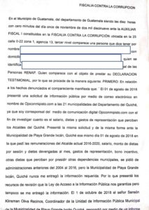 Ante la negativa de la municipalidad de Ixcán, Quiché, de entregar la información requerida, Ojoconmipisto ratificó este día ante la Fiscalía Contra la Corrupción la denuncia presentada en contra del alcalde Raúl Gutiérrez Ardón, el pasado 27 de octubre.