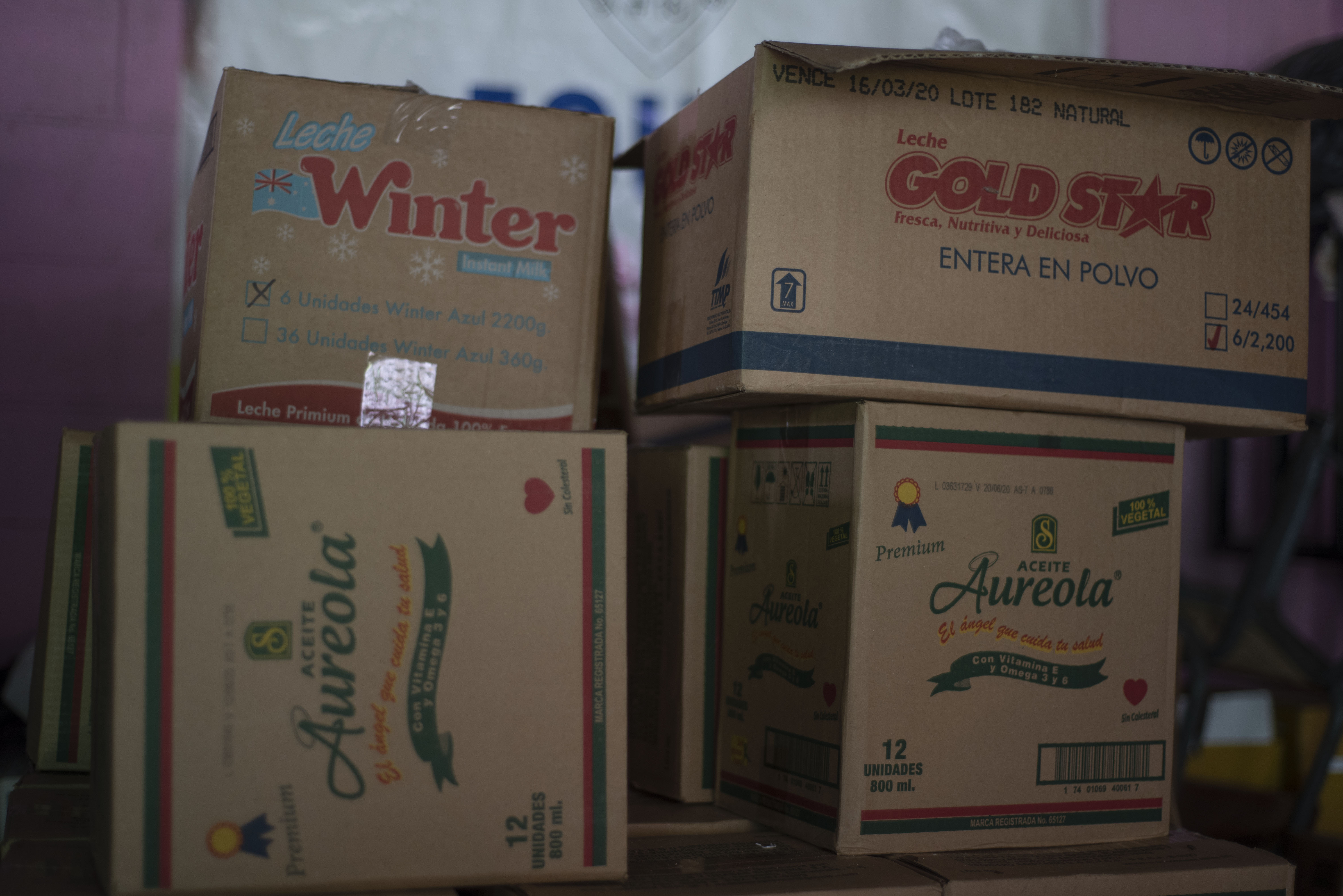 Las paredes verdes de esta escuela casi no se ven. Filas de cuatro cajas de alimentos, una sobre otra, cubren la superficie y hasta arriba se aprecia que funcionan como un mueble improvisado para carteles y otros materiales didácticos. Un niño, un poco cansado, se apoya sobre las cajas–paredes en la Escuela José Venancio López, en la zona 1 de la Ciudad de Guatemala, a inmediaciones de un mercado cantonal. Así como esta, existen establecimientos que carecen de una cocina para preparar comida, de padres y madres que se organicen y trabajen de forma voluntaria, y de una bodega para guardar las cajas.
