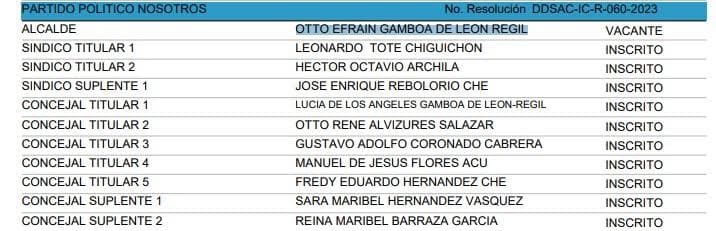 El exgobernador de Sacatepéquez, Otto Efraín Gamboa De León Regil, se postuló como aspirante a la alcaldía de San Lucas Sacatepéquez con el partido Nosotros.