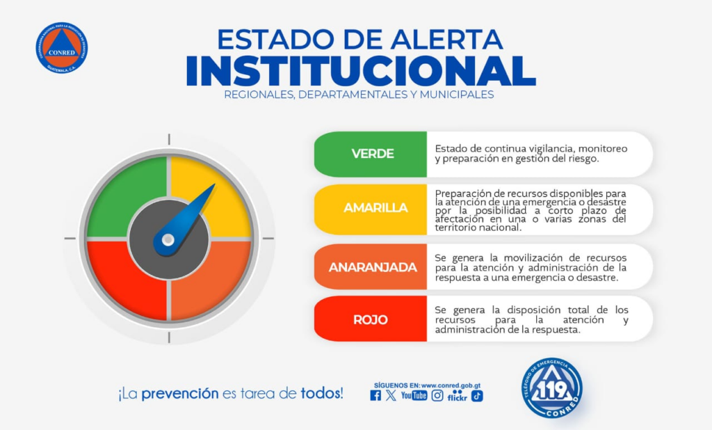A través de un comunicado, la Conred declaró alerta naranja en el país. Esto quiere decir que existe peligro y que la ciudadanía debe estar preparada para la evacuación. Además, se genera la movilización de recursos para la atención y administración de la respuesta a una emergencia.