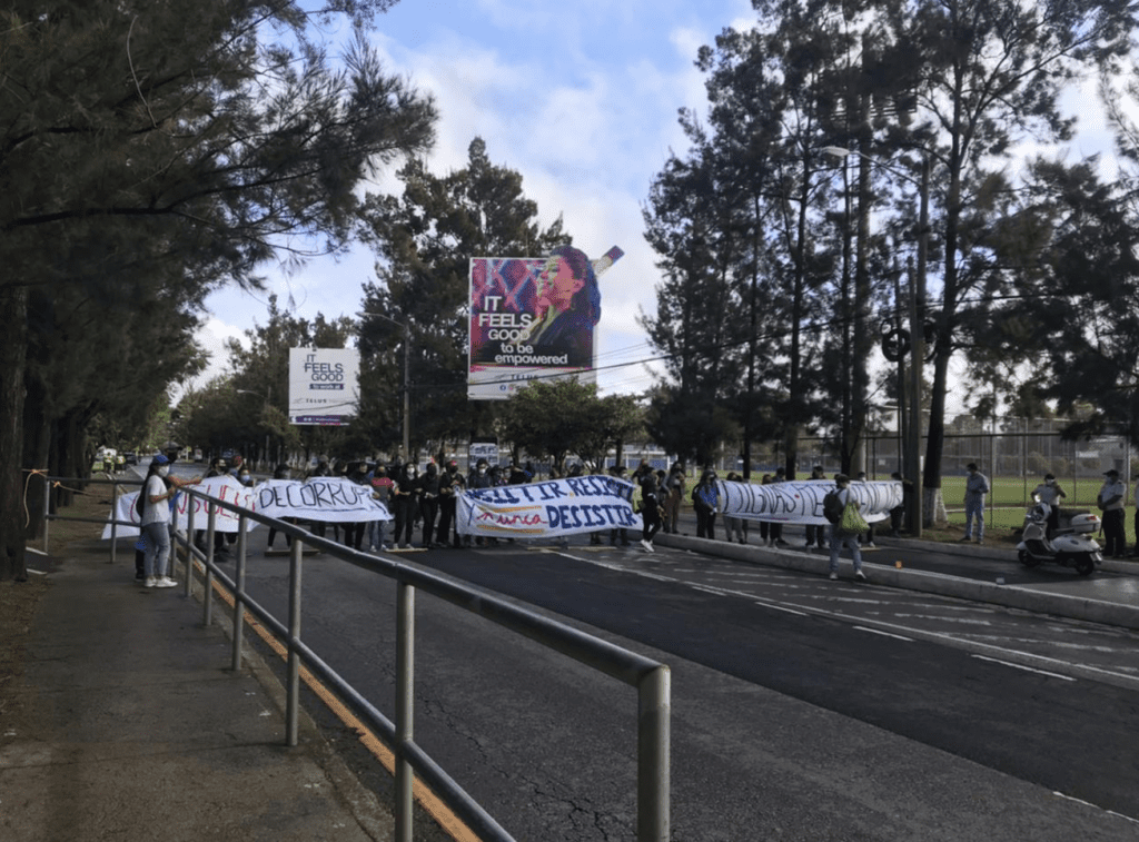 8:01 horas: Un grupo de estudiantes y organizaciones sociales interrumpen el paso de zona 15 hacia zona 10 de Ciudad de Guatemala.