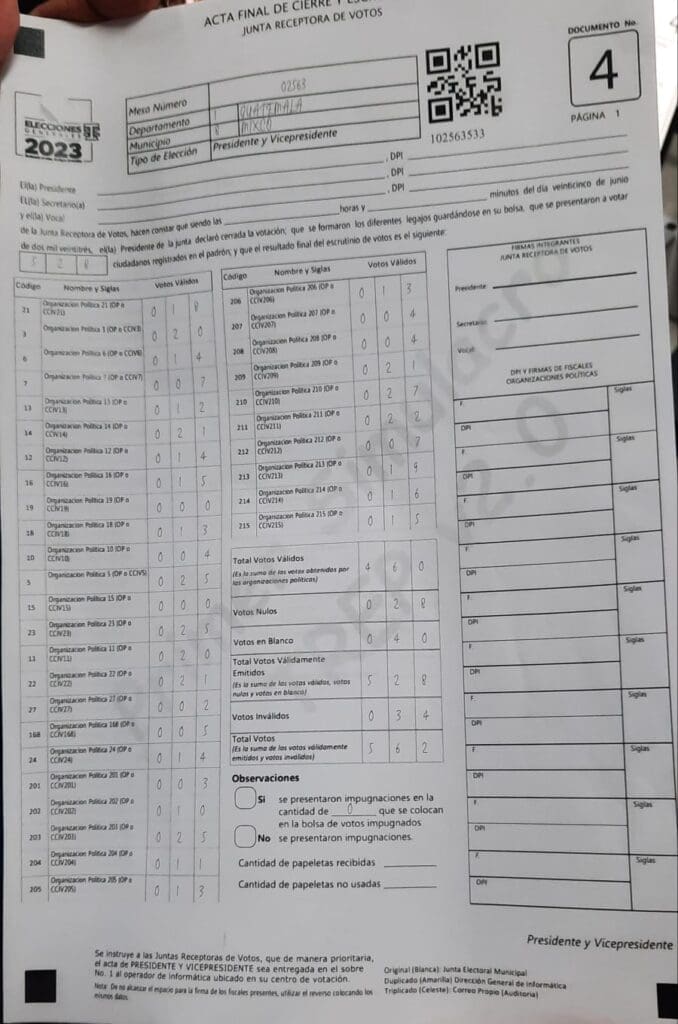 “Este es el acta número cuatro” detalló la directora Electoral del Tribunal Supremo Electoral, Gloria López, al mostrar la hoja que consideró es “la más importante” porque contiene los resultados obtenidos en cada mesa a nivel nacional.