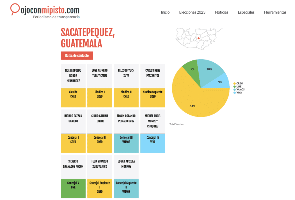 De León también aparece solo en la planilla. Manuel Archila, secretario general adjunto y coordinador departamental de Guatemala de esa organización, indicó que cada municipio tiene características diferentes. Ejemplificó el caso de Ipala, Chiquimula, en dónde los vecinos tienen temor de participar por el nivel de rivales políticos que existen.