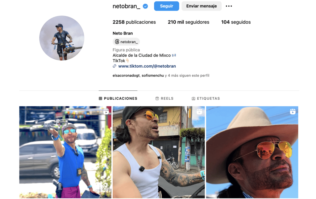 En 2024, el alcalde de Mixco, Neto Bran, publicó en la red social Instagram un total de 374 veces. Su cuenta está verificada por la plataforma. La de la municipalidad, que es la institucional, no. Esta publicó 582 veces.