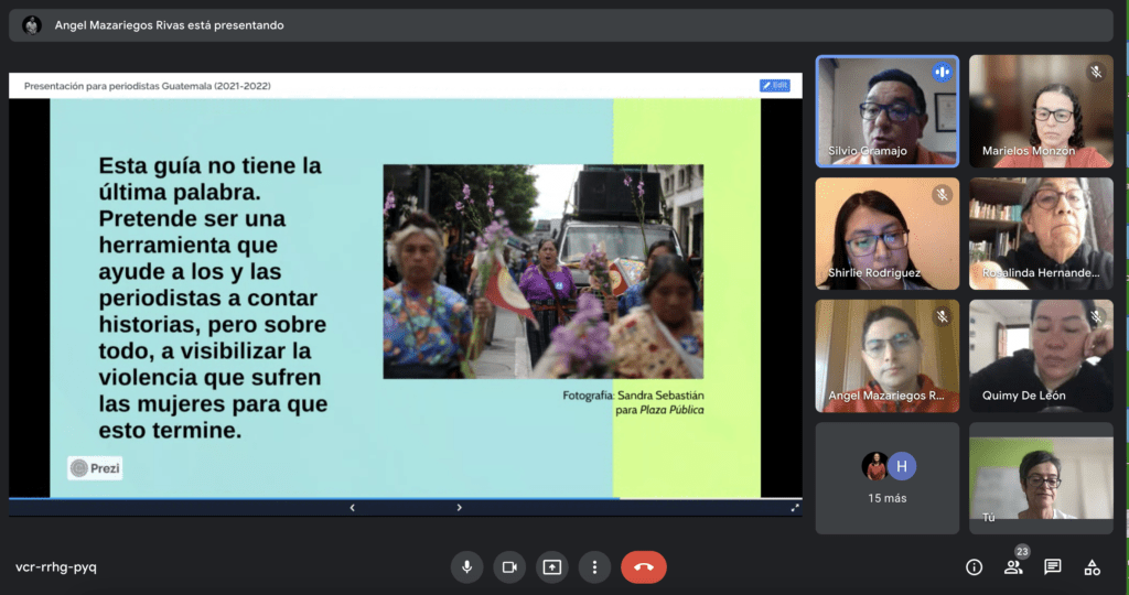 Este análisis motivó a los periodistas a desarrollar una guía práctica dirigida a otros colegas y a comunicadores que cubren la violencia contra mujeres en distintos espacios, como las redes sociales.