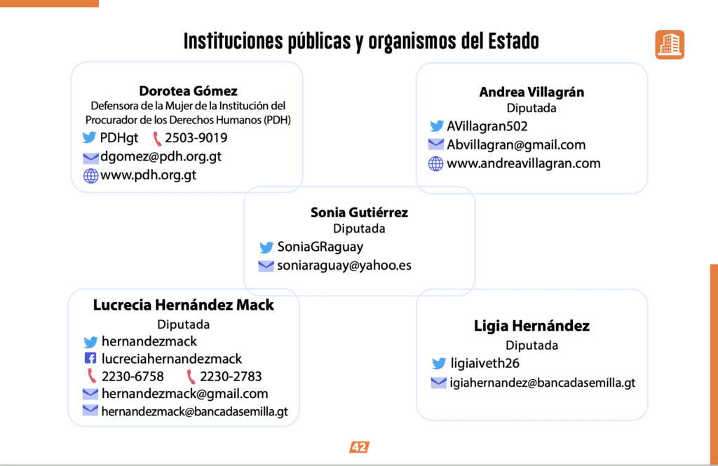 El trabajo estuvo a cargo de Shirlie Rodríguez (Proyecto Aliadas), Quimy de León (Prensa Comunitaria y Revista Ruda), Angel Mazariegos (Ocote) y Ana Carolina Alpírez (Ojoconmipisto), bajo la coordinación de Marielos Monzón.