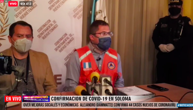 Esta noche de sábado 2 de mayo, el alcalde de San Pedro Soloma, Huehuetenango, Felipe Bacilio, anunció el primer caso de coronavirus. Poco después del gobernador y autoridades de Salud del departamento, confirmaron esta información en conferencia de prensa.