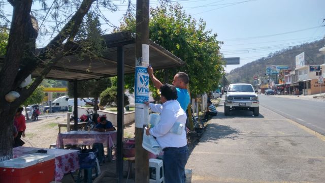 Rudy Iván Hernández Molina, candidato a alcalde por el partido Visión con Valores (Viva), aclara que conoce la ley y que “no es prohibido hacer uso de los postes. Lo prohibido es pintarlos o colocar la publicidad con algo permanente, nosotros usamos un adhesivo de fácil retiro”. Señala que no han tenido ningún tipo de llamado de atención. “La municipalidad está consciente a través de los asesores que tienen, que no trasgredimos nada”, concluye.