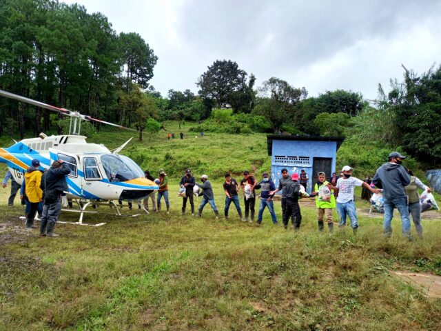Las autoridades locales de San Cristóbal Verapaz lograron un puente aéreo para llegar a la aldea Quejá y hacer un reconocimiento de los daños donde el jueves 5 de noviembre ocurrió un alud que soterró a unas 125 personas.