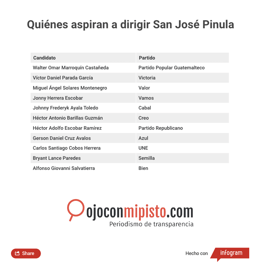 Solares y Ayala no son los únicos candidatos ya inscritos como candidatos a alcalde, hasta la fecha el Tribunal Supremo Electoral (TSE) reporta otros nueve aspirantes que buscan dirigir los destinos del municipio.