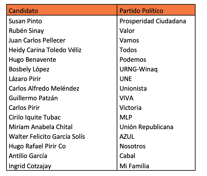 Estos son las persona que se postulan a alcalde de San Juan Sacatepéquez: