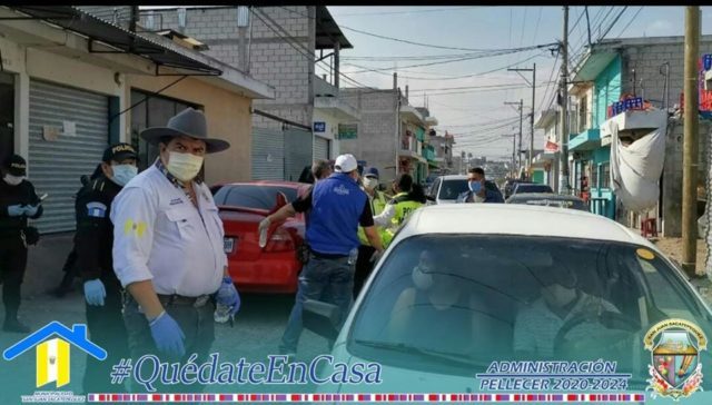 En el mismo mensaje aparece una fotografía de Pellecer con vecinos de la colonia Monte Carmelo II, Aldea Lo De Mejía. “Se coordina lavado de calles tras confirmarse primer caso de Covid-19 en ese sector”.