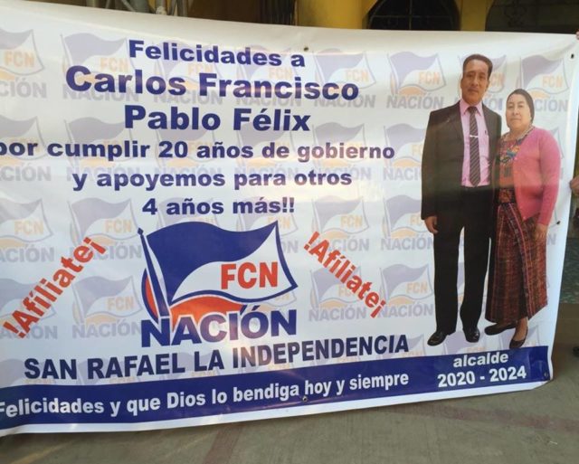 Carlos Francisco Pablo Félix asumió a la alcaldía desde el año 2000, casi dos décadas como jefe edil de San Rafael La Independencia, municipio de Huehuetenango. Y quiere continuar en el cargo.