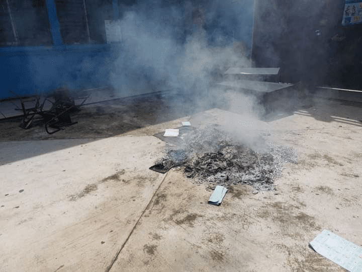 - En San Martín Zapotitlán personas quemaron las papeletas electorales en uno de los cinco centros de votación.
