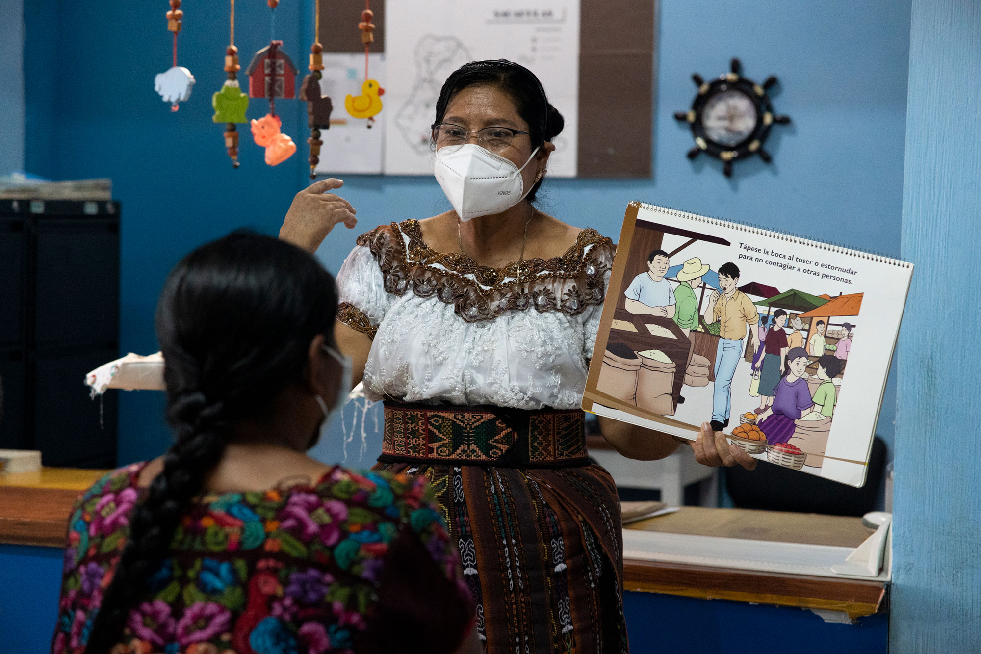 Ájcot trabaja en el Centro de Salud de Sacapulas desde hace 10 años, es auxiliar de enfermería y relata que algunos de los retos para controlar la desnutrición son la migración interna y educar a la población en seguridad alimentaria y nutricional. Las madres dejan a los hijos con sus padres mientras trabajan en tortillerías o abarrotes en otros departamentos.