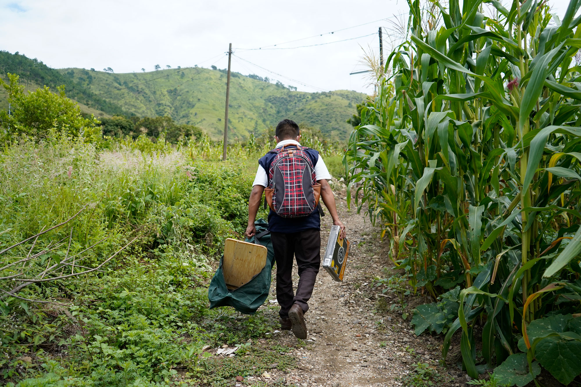 Álvaro Ajcot, enfermero del centro de salud, debe encontrar la forma de llegar a las comunidades para evaluar a los niños y niñas con desnutrición. Caminan o pagan el transporte con sus propios recursos.