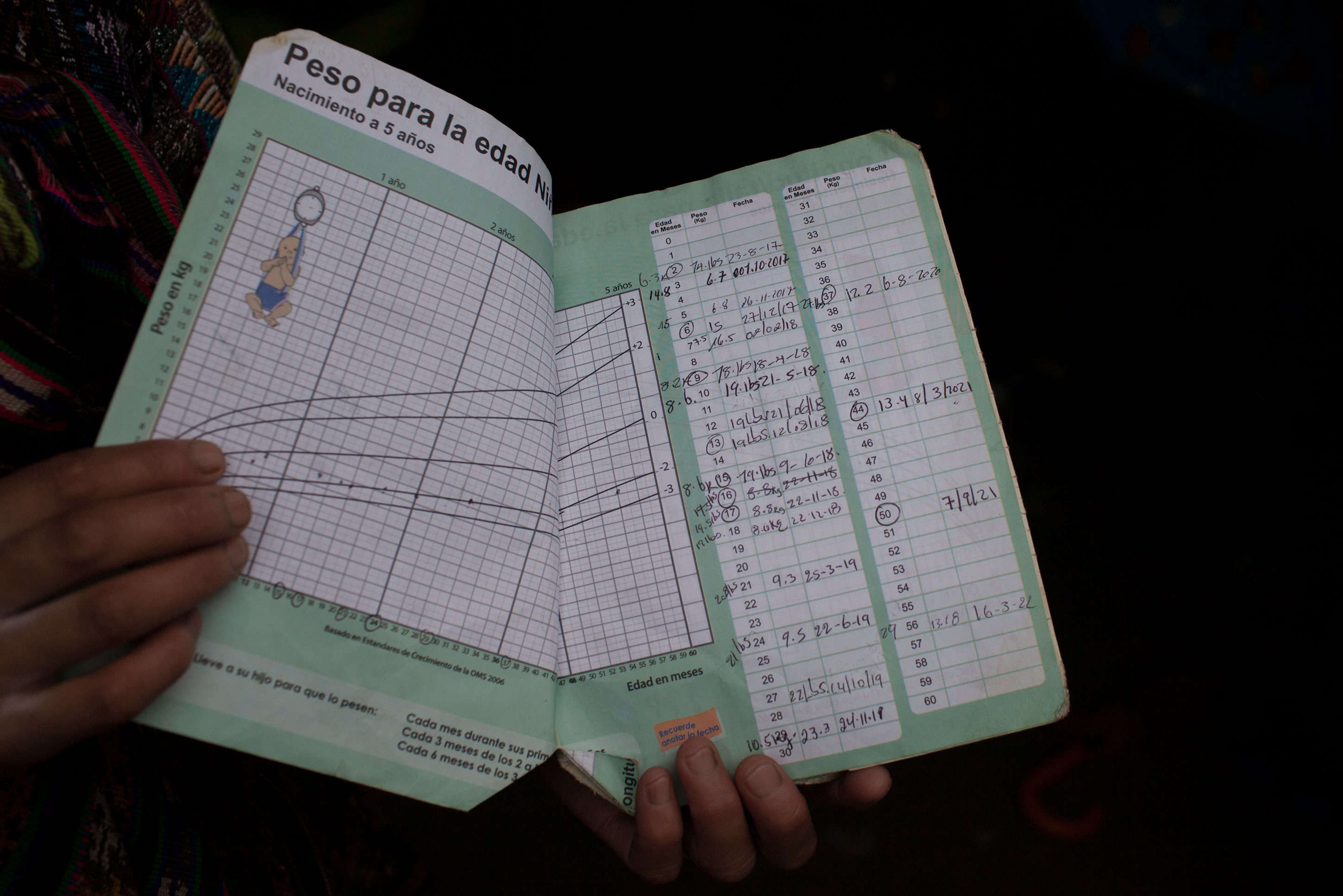 Según Marta, su hijo está bien alimentado. Para demostrarlo, enseña su carné de chequeos de 2017 a marzo 2022. Pero no se ha revisado su estado nutricional en mucho tiempo. Y el centro de salud no puede confirmar si padece de desnutrición crónica porque no hay seguimiento de su peso y talla.