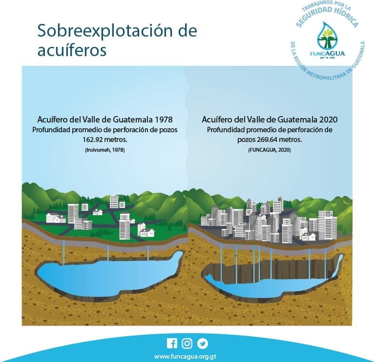 Esta práctica no está mal, explica la hidróloga, Sharon van Tuylen, pero sí se vuelve dañina cuando no se realizan los mismos esfuerzos para devolver el agua al subsuelo y así lograr un equilibrio. Lo define como un fondo común de donde todos absorben como si fuera infinito, cuando en realidad se agota. Esto fue comprobado por la Fundación para la Conservación del Agua de la Región Metropolitana de Guatemala (FUNCAGUA).