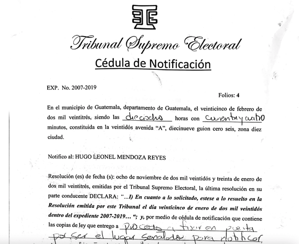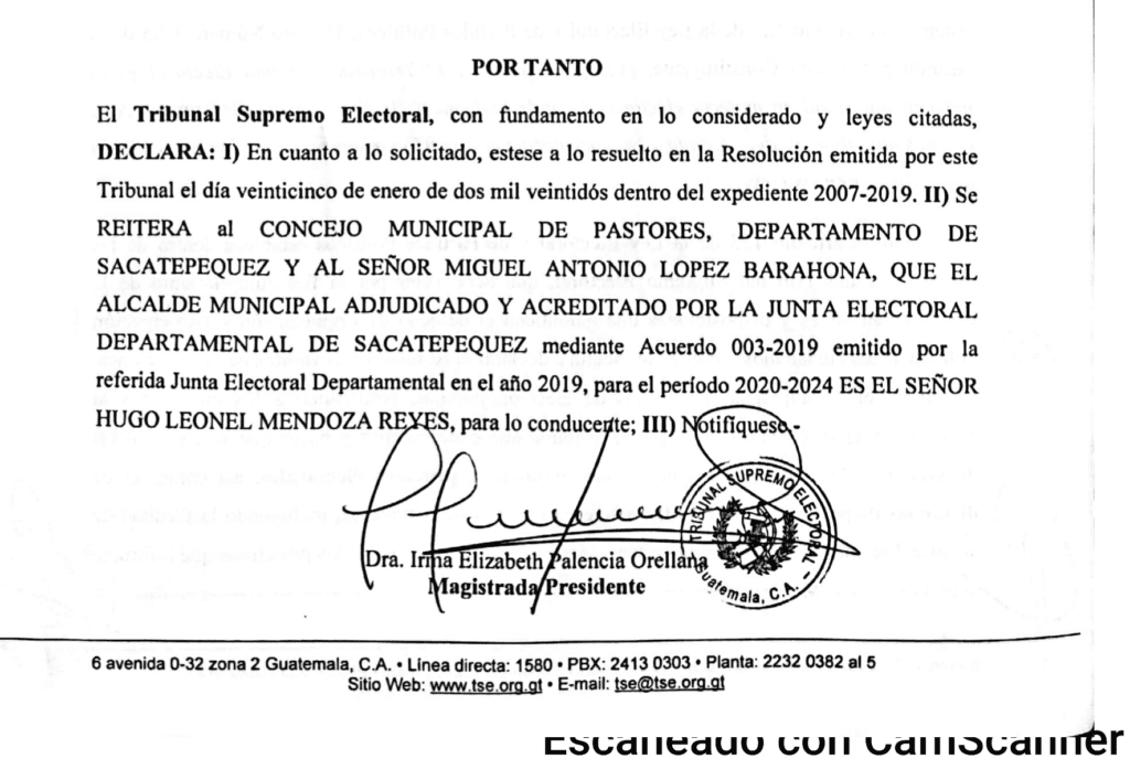 La inscripción para candidato a alcalde de Pastores, Sacatepéquez, el Registro de Ciudadanos se la revocó a Miguel Antonio López Barahona, el 25 de febrero pasado. En esa misma fecha, el Tribubunal Supremo Electoral (TSE) le notifico un recordatorio: él no es el alcalde de ese municipio, a quien reconoce como jefe edil electo es a Hugo Leone Mendoza Reyes.