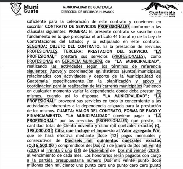 Pullin Sierra, cuñada del presidente del Congreso Álvaro Arzú, fue contratada por doce meses más “específicamente en la planificación, apoyo y coordinación para la realización de carreras municipales”.