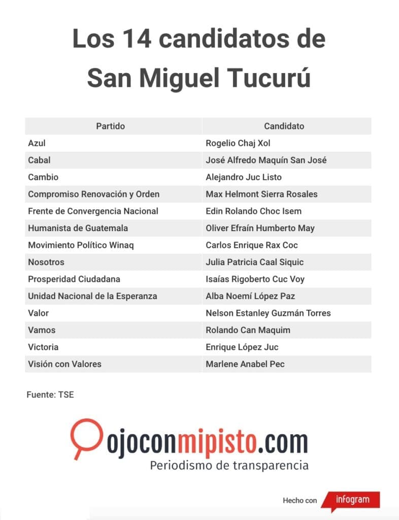 A la fecha son 14 los candidatos a alcaldes que buscan la silla edilicia en San Miguel Tucurú. Tres de ellos son mujeres.