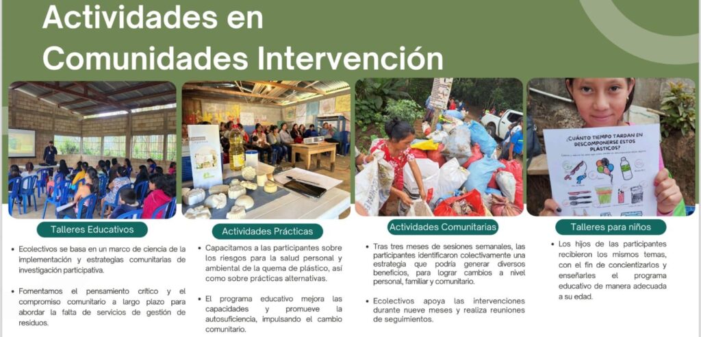 El estudio “Plastic waste generation and emissions from the domestic open burning of plastic waste in Guatemala” realizado por el proyecto Ecolectivos, la Universidad del Valle de Guatemala (UVG), la Universidad de Emory y el Instituto Nacional de Salud de los Estados Unidos, determinó que la mayoría de personas que recurren a la quema están en áreas rurales.