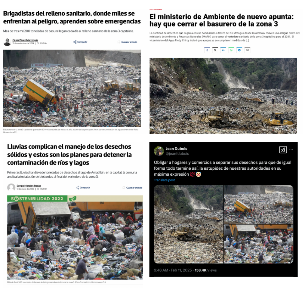 Estas no reflejan el estado actual del sitio de disposición de desechos de la zona 3 de la Ciudad de Guatemala. En la actualidad realiza un cierre técnico.