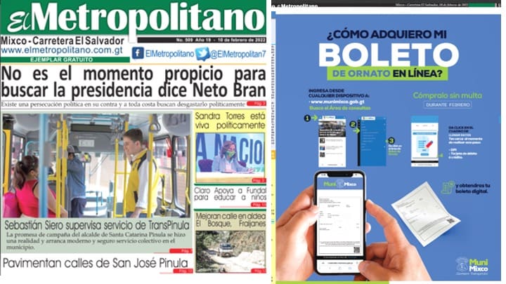 Este periódico se caracteriza por enfocar su cobertura en Bran. En su edición de febrero le dedicó la portada y mencionó que existe una persecución política y desgaste contra el jefe edil en referencia a las acusaciones que enfrenta. La municipalidad tuvo tres espacios a para anunciar trámites del boleto de ornato, IUSI y pagos en línea. Esta pauta le cuesta Q21 mil mensuales a la alcaldía.